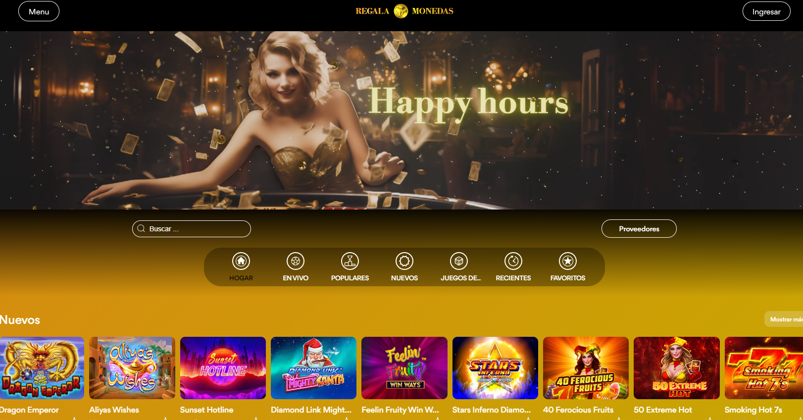 RegalaMonedas ofrece la posibilidad de gestionarse en su forma base (slots) o en su forma completa (súper slots, bingo, ruletas, juegos de mesas en vivo y apuestas deportivas) Este casino online cuenta con un panel de gestión que ofrece distintas funcionalidades como bonos, chashback y mucho más. Ideal para los iniciados en el mundo del casino.